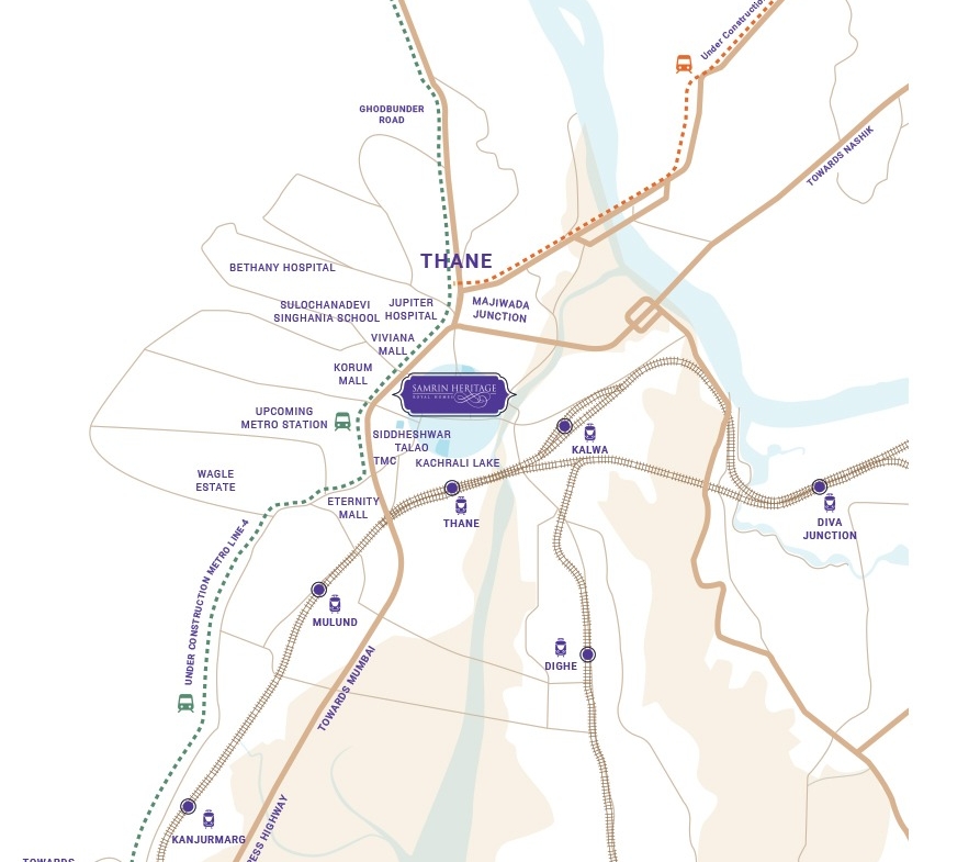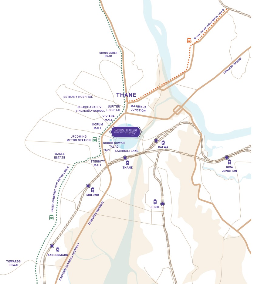 Surrounded by Thane’s signature lakes (Talav Pali, Kachrali, Upvan)